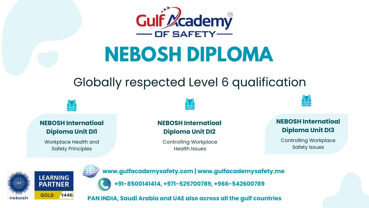 Take your health and safety career to the next level with the NEBOSH Level 6 International Diploma. Our NEBOSH Diploma courses cover leadership, risk management, and compliance strategies, giving you practical skills for global workplaces. Through the NEBOSH IDip, you can achieve the prestigious NEBOSH Diploma certificate, recognized internationally by employers. The NEBOSH International Diploma is ideal for managers, engineers, and safety professionals aiming for career growth. Flexible learning, expert trainers, and a globally respected curriculum make our NEBOSH Diploma program the perfect choice. Invest in your future and gain the qualifications that employers value worldwide.